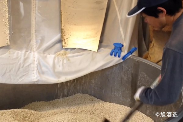 旭酒造の焼酎づくりは全てが手作業。仕込みから熟成までの過程はもちろん、ラベル貼り、充てん、封かんも全て手作業で行っています。手作業ゆえ皆さまにお届けできる量は限られてしまいますが、こだわりをもって丁寧に酒を醸しています。